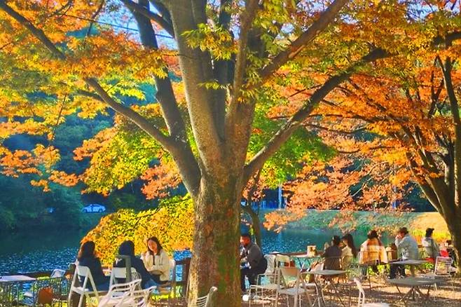 불장골 저수지는 엔학고레 카페 옆에 있는 가을 정취를 품은 호수입니다.