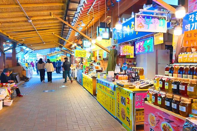 시장 내에는 지역 특산물과 수제 먹거리가 다양하게 판매되며, 특히 쑥떡, 재첩국, 다슬기국 등은 방문객들에게 인기가 많습니다.