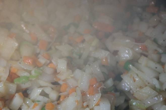 2. 채소 비중 늘리기: 햄이나 스팸 대신 양파, 당근, 호박 등 채소의 비중을 늘려 칼로리를 낮추고 영양을 더합니다.