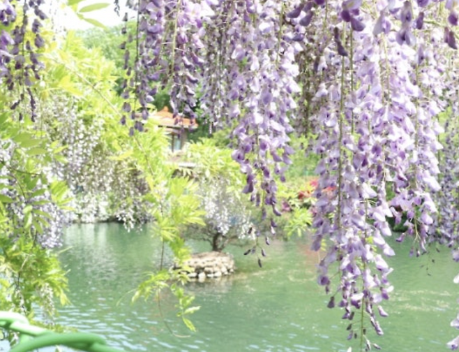 주요 특징: 보랏빛 등나무꽃 터널, 인공 폭포, 연못, 철쭉 군락