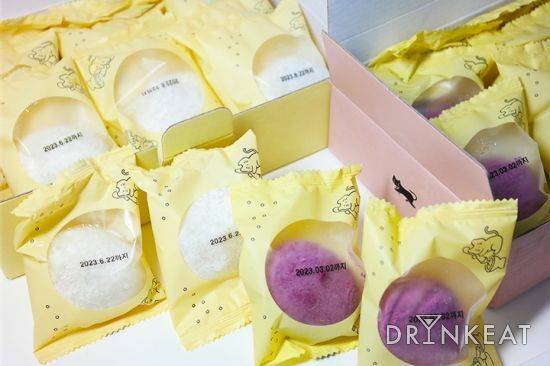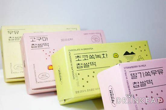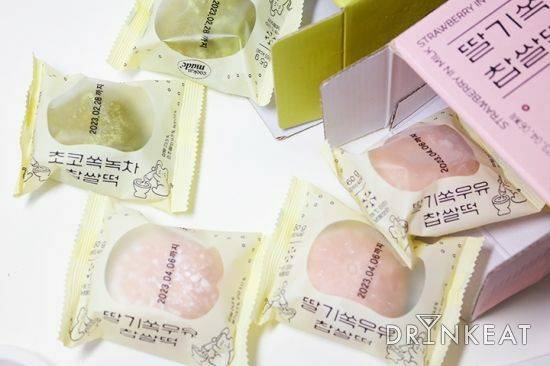 우유와 고구마 맛은 한 박스에 12개, 딸기와 초코녹차 맛은 9개가 들어있다. 전부 개별포장되어 있는데, 비닐 쓰레기가 많이 나온다는 점이 아쉽긴 하지만 식사 대용이나 간식으로 먹기에는 편하다. 보관 중에 떡이 달라붙을 일도 없고, 먹을 만큼만 해동하기도 좋다.