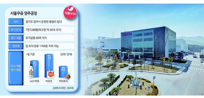 23일 찾은 경기 양주시 은현면 용암리 일대의 서울우유 양주공장. 서울우유는 기존 용인공장과 양주공장을 통합해 양주 신공장을 세웠다. 부지 면적만 7만7000평에 달하는 공간에는 지하 1층~지상 5층 규모의 대규모 설비가 들어섰다.