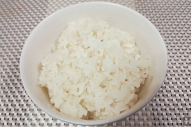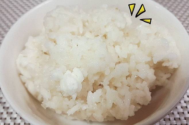 잠시 후 확인해 보면 얼음은 다 녹았고요. 얼핏 봐도 밥이 촉촉하게 해동된 느낌이 납니다.