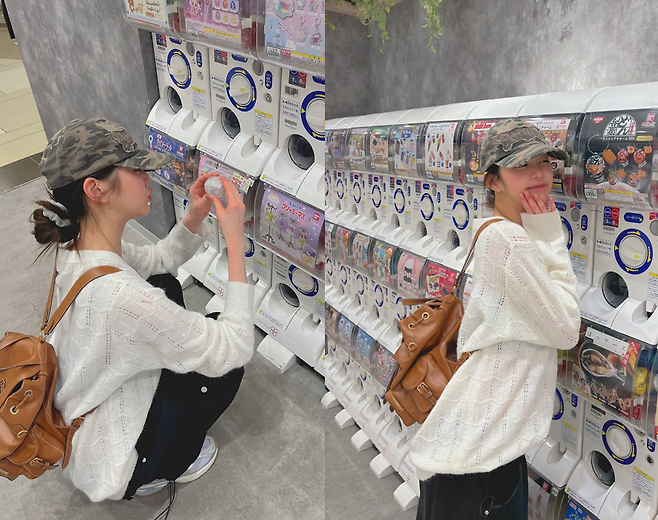 가챠 뽑기 앞에선 더더욱 현실적인 장원영이 돋보였다. 짱구 시리즈 중 '훈이'를 뽑은 뒤 무릎 꿇고 앉아 ‘실패’를 온몸으로 표현하는 그녀의 모습은, 팬들에게 반전 웃음을 안겼다.