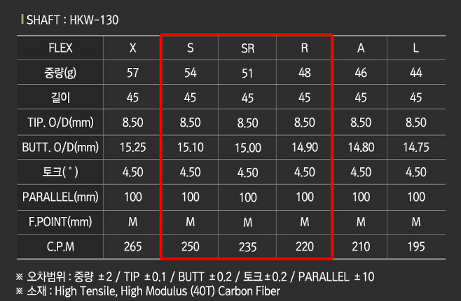 고반발 성능을 위한 경량 카본을