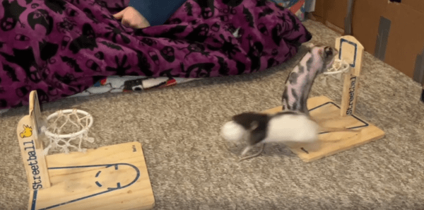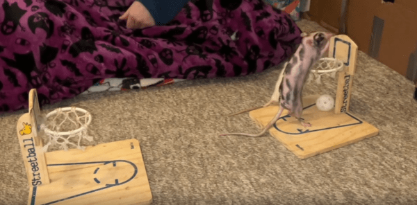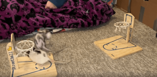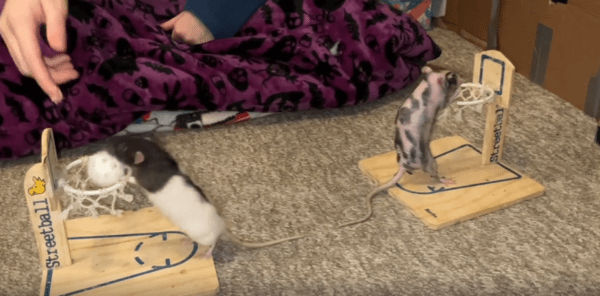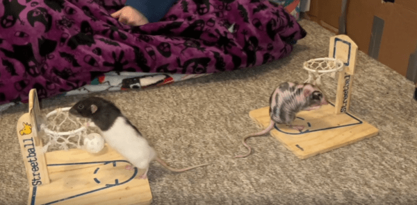 레이즌과 토스트, 이름만큼 귀여운 두 쥐가 나란히 골대 앞에서 미니 농구 대결을 펼치는 순간—작고도 치열한 승부의 현장