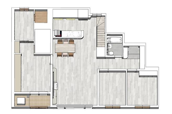 우드톤의 마감재로 이루어져 있던 3개의 방과 2개의 화장실, 그리고 복층 다락방 하나가 있던 아파트는 대대적인 공사를 통해 화이트 톤의 디자인으로 바뀌었고 다락방을 2개의 공간으로 나눠 총 5개의 방을 가지게 되었습니다.