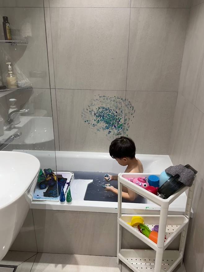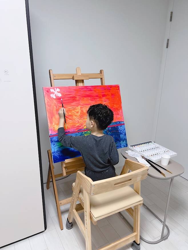 엄마의 이젤과 유화물감, 전문가용 색연필 등 아이에게는 보물섬 같은 곳이라 호시탐탐 서랍장을 열어서 그림 그리기를 즐기고 있습니다.