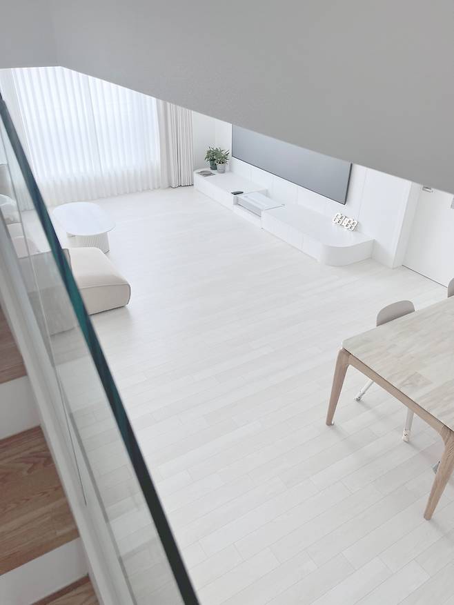 주방에서 바라본 거실의 모습입니다. 처음에는 답답해 보일 것 같다며 반대하던 남편도 지금은 매우 만족하고 있습니다.