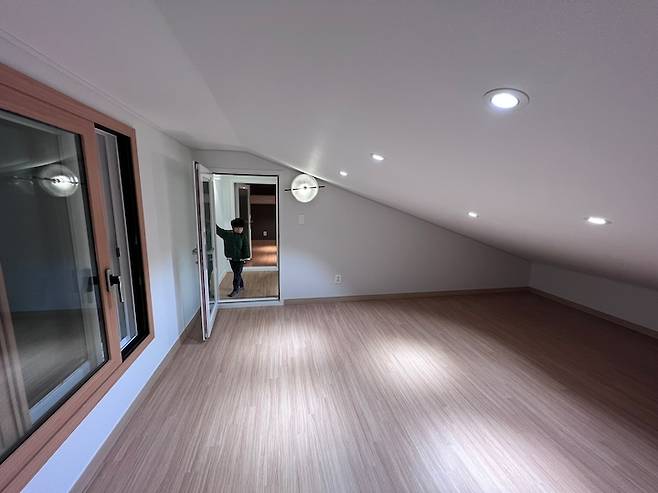 오픈식 난간과 하나의 넓은 다락방으로 이루어져 있던 공간입니다. 그대로 사용하기에는 냉난비의 걱정이 컸고 활용의 제한도 많았습니다.