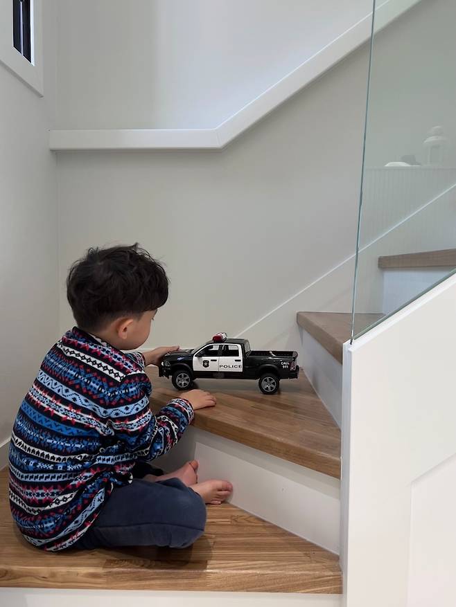 아이가 계단 마지막 칸에 앉아서 저녁을 준비하는 저에게 종알종알 이야기를 하기도 하고 주차장 놀이를 하기도 하는 공간입니다.
