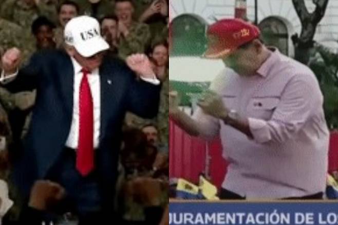 6일(현지 시각) 가디언 등에 따르면, 트럼프 대통령은 이날 워싱턴에서 열린 공화당 의원 모임에서 "그(마두로)가 무대에 올라 내 춤을 조금 따라 하려 했다"라고 말했다.
