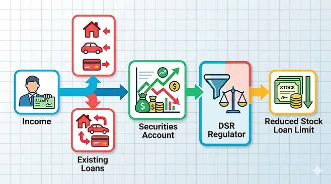 최근에는 기존 대출이 있는 사람들이 추가 자금을 마련할 때 DSR 때문에 어려움을 겪는 경우가 많습니다. 이런 상황에서는 신용대출이 생각보다 쉽게 나오지 않거나 한도가 기대보다 훨씬 적게 잡힐 수 있습니다. 그래서 투자자들 사이에서는 주식담보대출이나 스탁론처럼 자산 평가를 기준으로 보는 방식에 관심이 커집니다.
