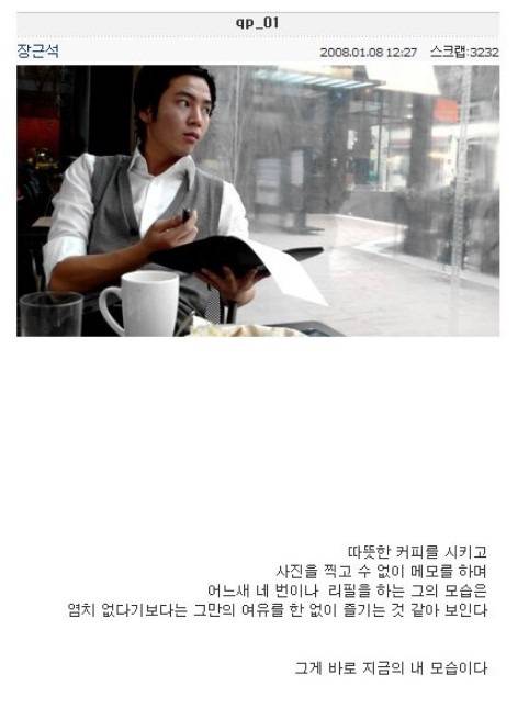 당시 장근석은 본인의 싸이월드에 허세가 느껴지는 사진과 글을 다수 올리며 화제의 인물로 떠올랐다. 당시 싸이월드가 허세글로 유명한 SNS였지만, 장근석의 허세는 지금까지 회자가 되는 역대급 임팩트를 남겼다.