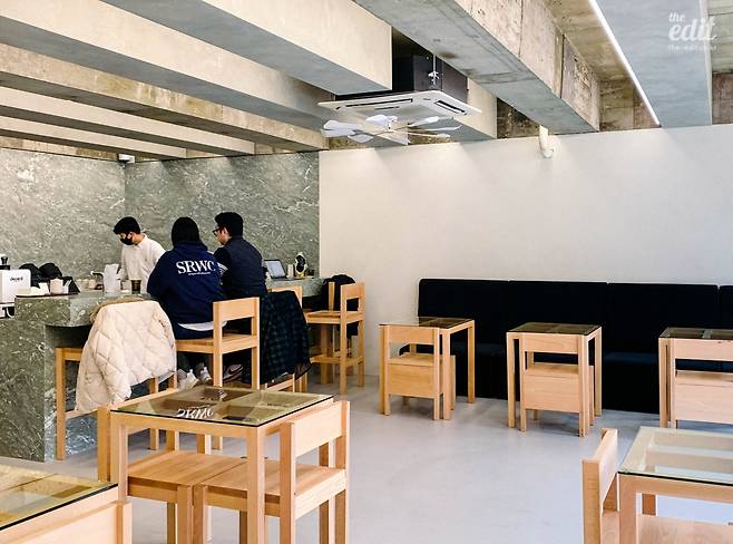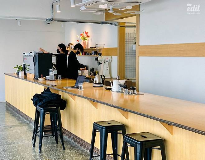 재밌는 건 오직 해외 로스터리의 원두만 취급한다는 점. 국내 로스터리에 비해 상대적으로 생두 선택의 폭이 넓다는 게 그 이유다. 쉽게 접하기 어려운 산지의 커피도 소개할 수 있고, 동일한 국가 안에서도 천차만별의 특징을 지닌 커피를 선보일 수 있어서 재배 지역에 대한 선입견을 깨기 좋다는 이점도 있단다. 다양한 원두 중에서도 ‘깔끔한 개성’을 보여주기 좋은 워시드 커피만을 엄선한다고 하니, 너무 진하고 강렬한 커피보다 차 마시듯 산뜻하고 편안한 커피를 좋아하는 분들이라면 입에 맞을 것이다(워시드 커피란 커피 체리를 가공하는 과정에서 과육을 물로 씻어내는 방식의 커피를 말한다).