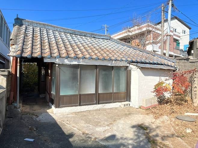 전 주인인 할머니의 할아버지가 손수 지어 4대가 100년에 걸쳐 살아왔다고 전해 들은 이 집은 정면에서 봤을 땐 마치 반쪽짜리 집처럼 보였는데요. 왜 반쪽짜리 집처럼 보이나 했더니 현관이 측면에 나 있더라구요.