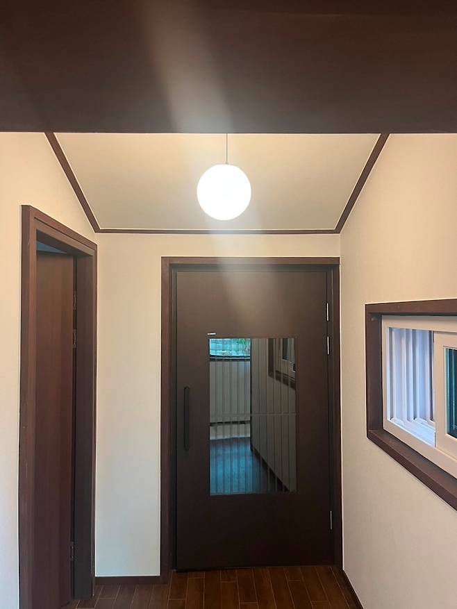 그래서 앞마당과 가장 가까운 첫 번째 방의 1/3 가량을 할애해 현관과 현관 전실을 새로 만들었고, 현관문에 이어 중문을 열고 내부로 들어서면 길게 뻗은 복도가 첫눈에 담기도록 했죠. 방 하나를 포기해가면서 만든 공간이기에 활용도는 크게 줄어들었지만 후회 없는 선택이랍니다.