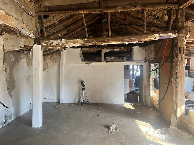최종 한 군데의 업체와 계약을 체결하기까지 3개월이라는 시간이 흘렀고, 천장 서까래 등 내부 컨디션 확인을 위해 1차 철거를 해둔 저희 집은 뼈대만 남긴 채 겨울을 보내야 했습니다. 이 시기에는 집이 무너지는 꿈을 정말 많이 꿨던 것 같아요..