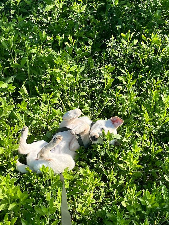 2개월 무렵 강릉 어느 공장에서 발견되어 개린이 시절 대부분을 센터에서 보낸 무늬는 겁도 많고 소심한 편이지만 저와의 생활에, 그리고 새로운 집에서의 삶에 조금씩 적응해가고 있어요. 아파트 키즈로 평생을 살아온 저도 매일같이 생겨나는 거미줄과 돌아서면 또 떨어져 있는 설익은 감을 줍느라 몸이 바쁜 나날을 보내며 주택살이에 스며들고 있구요.