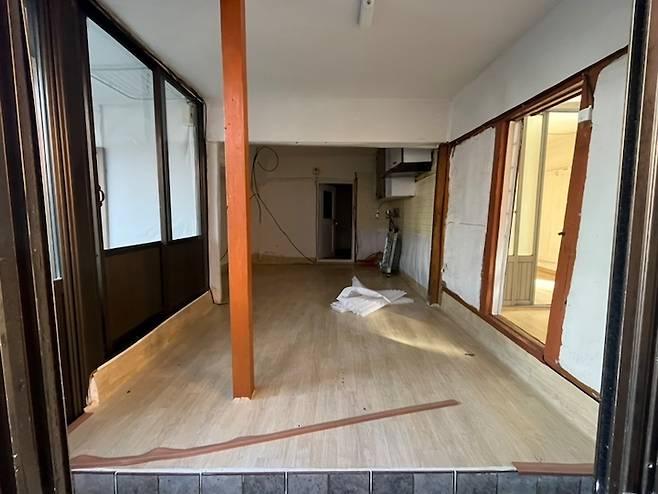 철거를 해보니 부엌 천장이 다른 곳보다 유독 낮았고, 서까래와 돌출보 등 구조물 상태가 그리 좋지 못했습니다.