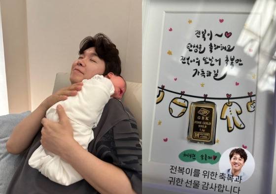 특히 눈길을 끈 건 배우 차태현의 축하 선물. 그가 준비한 건 다름 아닌 7.5g짜리 순금 골드바였습니다. 손글씨 메시지와 함께 전해진 이 선물은 단순한 금덩어리를 넘어, 전복이의 앞날을 축복하는 진심 어린 마음이었습니다. 전통적으로 금은 아기의 건강과 부를 기원하는 의미가 담긴 선물로, 차태현의 따뜻한 배려가 돋보였죠.
