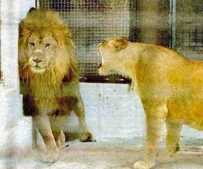 먼저 결혼하기 전 사진 속에는 수컷 사자가 날카로운 이빨을 드러내면서 포효를 하고 있는 모습이 담겨 있었는데요.