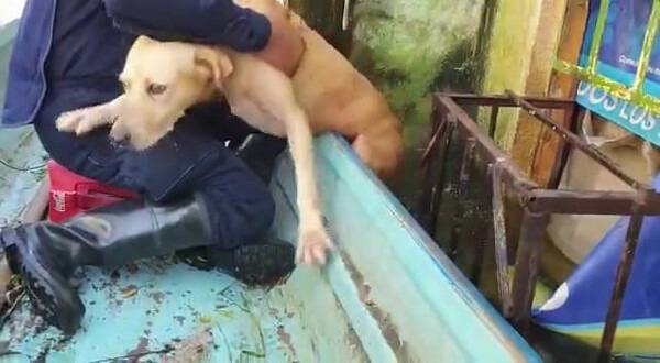 강아지는 몸 절반이 물에 잠긴 체, 누가 봐도 지친 모습이 역력했습니다. 이에 구조대원은 서둘러 다가가 먼저 머리를 쓰다듬으며 강아지를 진정시켰습니다.