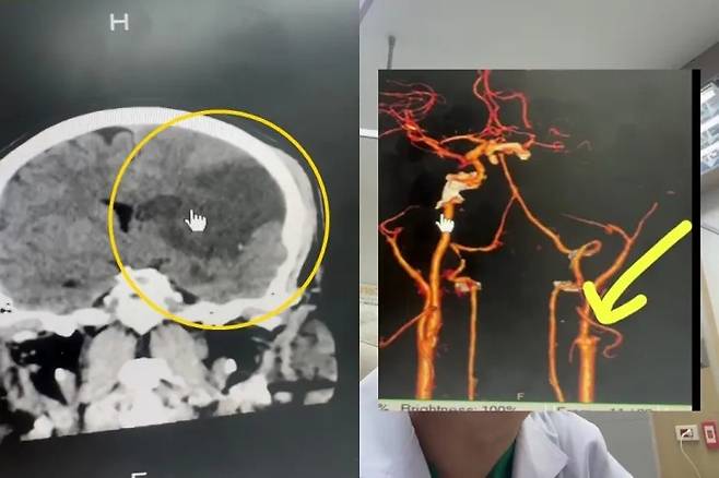 환자는 이후 오른쪽 팔과 다리에 힘이 빠지고 언어 장애까지 겪어 병원을 찾았다. 컴퓨터 단층촬영(CT) 결과, 환자의 왼쪽 뇌 상당 부분이 괴사한 것으로 나타났다.