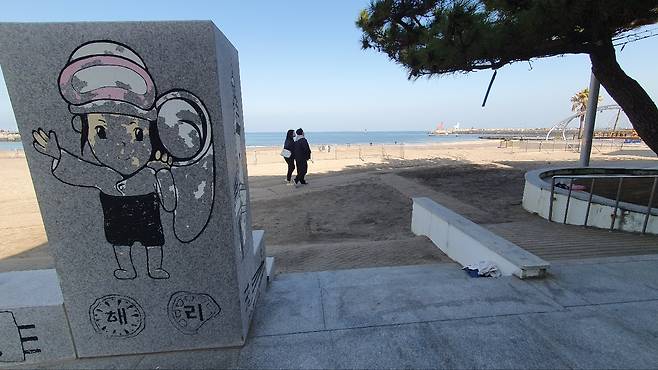 15일 10시 반, 날씨 매우 맑음. 설레는 마음을 안고 이호 태우 해변에 도착했다. 백사장, 푸른 바다 그리고 해녀 동상이 어우러진다. 이호 방파제는 해녀가 ‘물질’(해녀가 바닷속에 들어가 해산물을 따는 작업)을 하는 장소다. 이미 해녀 분들이 바다에서 작업 중이었다.