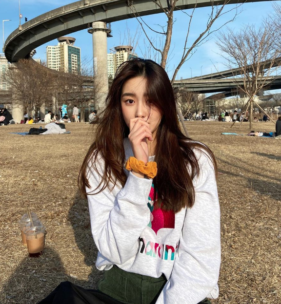 이승현 양은 야외활동시 편안하고 활동적인 패션템으로 선호되는 스웨트룩을 선보였는데요. 맨투맨 상의에 코듀로이 팬츠로 보온성도 놓치지 않는 스타일링입니다.