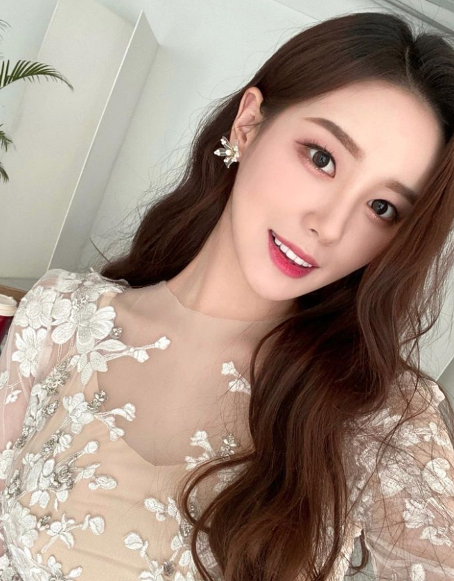 이승현 양은 플라워 패턴 드레스에 핑크 메이크업으로 청순한 스타일링을 연출했습니다.