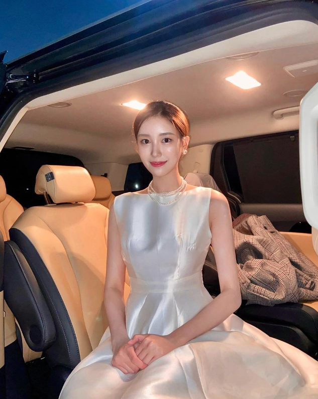 지니뮤직어워드에 참석한 이승현 양. 오간자 원단이 고급스러운 화이트 룩에 진주 악세사리를 더해 우아한 분위기를 자아냈습니다.