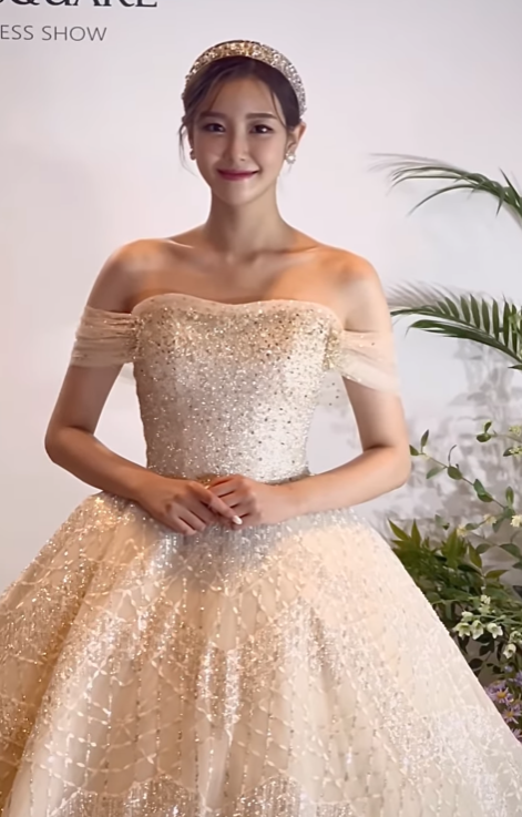 이승현 양은 다양한 드레스를 선보이며 시선을 사로잡았는데요. 고급스러운 비즈가 수놓인 벨라인 드레스를 완벽 소화했습니다.