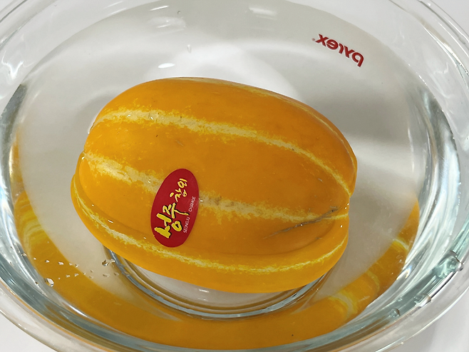 싱싱한 참외를 구분하는 방법은 물에 넣어 떠오르는지 보는 것인데요. 싱싱한 참외일 경우 물 위로 살짝 떠오르는 반면, 상태가 안 좋은 것은 가라앉는다고 합니다.