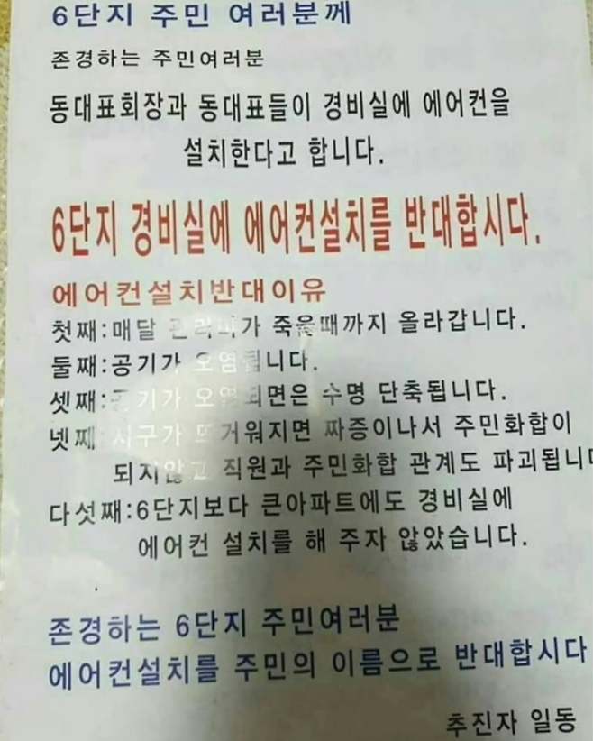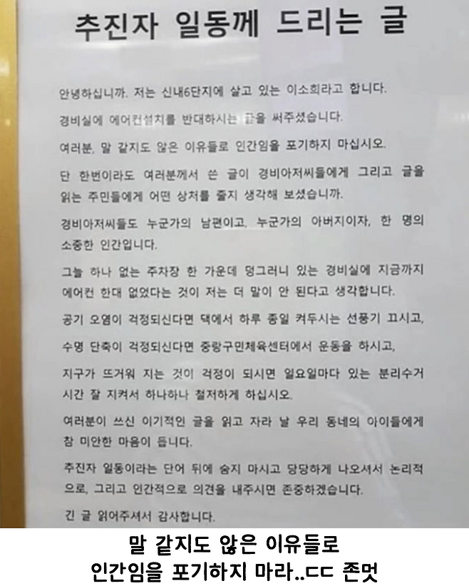 경비실 에어컨 설치 반대에 실명 까고 팩폭하는 개념녀