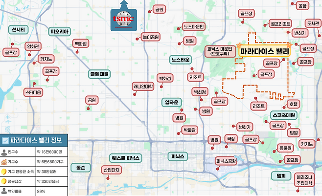 애리조나주는 최근 몇 년간 TSMC와 인텔 같은 글로벌 반도체 기업부터 LG에너지솔루션 등 2차전지 기업까지 첨단 기술 기업들이 하나 둘 자리를 잡으면서 새로운 산업 메카로 급부상했다. 고소득의 첨단 기술 인재가 대거 몰리면서 최첨단 관개 시스템을 갖춘 골프장, 인공 호수를 조성한 고급 리조트 등 과거 사막 도시에서는 상상하기 어려웠던 럭셔리 인프라까지 생겨났다. 이러한 인프라는 파라다이스 밸리의 가치를 높이는 요인으로 꼽혔다.