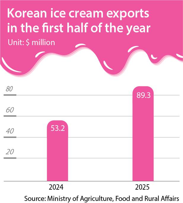 The nation's ice cream exports in the first half of the year were valued at $38.5 million in 2021, $44.7 million in 2022 and $55.3 million in 2023. While 2024 saw a slight dip to $53.2 million, exports bounced back stronger this year. In the first half, Korea exported $89.3 million of ice cream, a 23 percent jump from the same period of last year, according to the Ministry of Agriculture, Food and Rural Affairs. Experts believe the total will surpass the all-time high of $100 million by the end of the year.