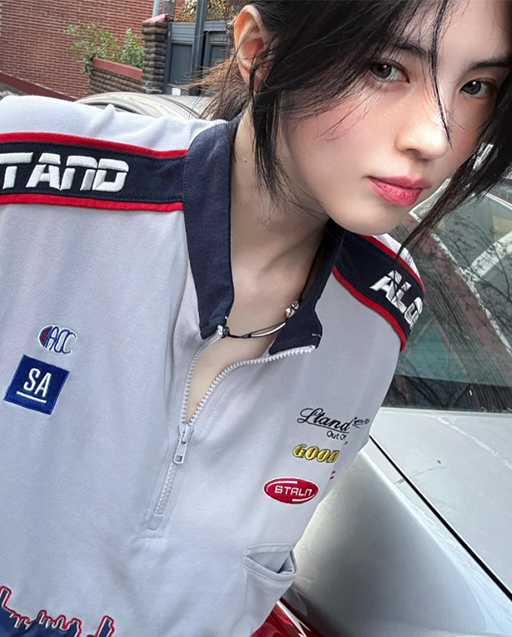 특히 넉넉한 실루엣의 오버핏 레이싱 셔츠는 유니크한 패턴과 브랜드 로고가 돋보이며, 하의는 데미지 디테일이 더해진 데님 반바지로 스타일에 생동감을 더했다.