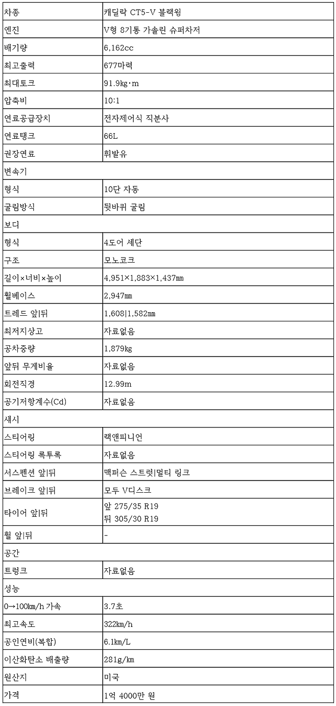 CT5-V 블랙윙의 가격은 1억4,000만 원이다. BMW의 M5가 1억7,000만 원, 메르세데스-AMG GT 63 4도어 모델이 2억4,000만 원이라는 점을 감안하면, 저렴한 가격에 더 높은 출력을 가질 수 있다. 그래서 매력적이다.
