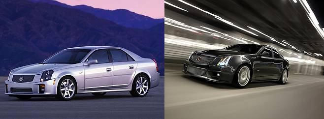 V는 2004년 CTS-V로 시작했다. 그룹 내 쉐보레 콜벳의 심장을 이식 받아 최고출력 400마력, 최대토크 53.9㎏‧m를 뿜었다. ‘4도어 콜벳’이란 별칭이 암시하듯, 막강한 동력성능을 과시했다.