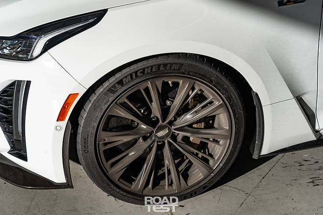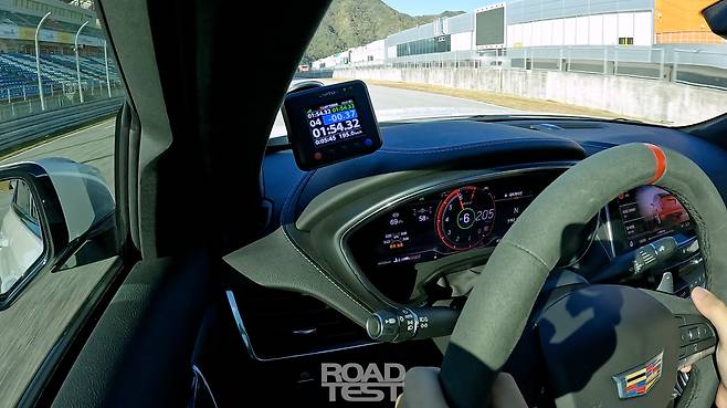 이날 주행의 배스트랩은 1분54 32를 기록했다. CT5-V 블랙윙의 타이어는 앞 275, 뒤 305 사이즈의 미쉐린 PS4S 스포츠 타이어를 사용한다. 프로 드라이버가 한 등급 높은 타이어를 사용한다면 순정으로도 1분 49초를 넉넉히 기록할 수 있을 듯하다.