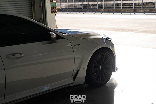 겉모습은 생각보다 얌전하다. 멀리서 보면 CT5 일반모델과 큰 차이를 느끼지 못할 수준이다. 조금 더 공격적인 범퍼 그래픽과 곳곳에 에어로 파츠를 더했다. 흉흉한 성능을 감추고픈 장난기가 엿보인다. 차체 길이와, 너비, 높이는 각각 4,945×1,885×1,440㎜. 휠베이스는 37㎜ 늘어 2,947㎜다.