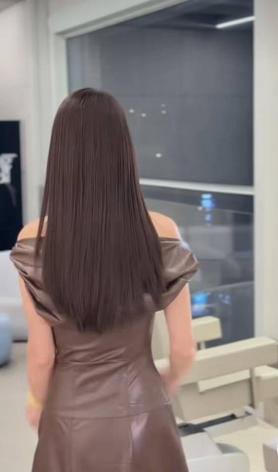 헤어는 정갈하게 내린 생머리로 연출해 과한 스타일링 없이 의상의 질감과 분위기를 부각했습니다.