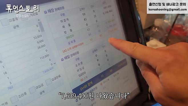 지금 (오후) 8신데 지금까지 매출은 7,639,400원 나왔습니다. (오후) 4시에 오픈했어요. 근데 오늘 준비했던 재료가 다 끝나서 지금 솔드아웃이라 더 이상 받을 수가 없습니다. 이게 사업을 하시는 분들은 시대의 흐름을 잘 읽으셔야 되잖아요. 트렌드를 잘 읽고 트렌드에 맞는 사업을 선택해서 하셔야 되는데 대부분 자영업자분들은 이미 포화가 되고 있는 사업 군에 사업을 시작하시는 분들이 굉장히 많으세요.