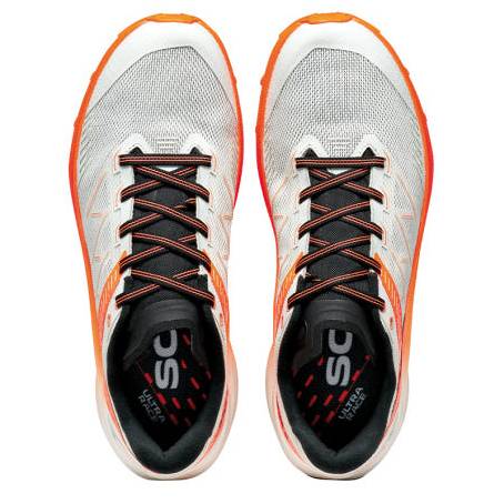 염주호 선수가 추천해 준 스카르파의 '스핀 울트라2'를 신고 훈련했다. 내가 훈련한 장소는 시멘트 도로와 흙길이 뒤섞인 공원이었다. 염주호 선수는 이 신발을 두고 반발력이 좋아 빠르게 달리는 데 도움을 주는 신발이라고 했는데, 나는 느리게 달린 편이라 뚜렷한 반발력을 느끼진 못했다. 대신 이 신발의 주행력에 놀랐다. 많은 트레일러너가 훈련 때 트레일러닝화를 신고 시멘트 도로에서 달리지 않는다. 트레일러닝화의 좋은 마찰력이 발을 붙잡는 역할을 하기 때문이라고 본다. 나 또한 그랬다. 트레일러닝화의 일반 도로에서의 주행감은 상쾌함보다 둔탁한 느낌을 전한다. 발밑에서 뭔가가 걸려 "드르륵"하는 느낌이다. 그런데 이 신발은 마치 러닝화를 신고 뛰는 것과 비슷한 기분이었다. 비브람 고무가 쓰인 밑창의 튀어나온 '돌기'를 세어봤다. 스핀 울트라2는 45개, 다른 트레일러닝화는 50개가 넘었다. 무게는 280g(270mm, 신발 한 개 기준)이다. 좋은 주행감은 비교적 적은 돌기와 가벼운 무게 덕분일 수 있다. 그러니까 스핀 울트라2는 로드와 트레일을 동시에 공략할 수 있는 전천후 트레일러닝화라고 할 수 있다.