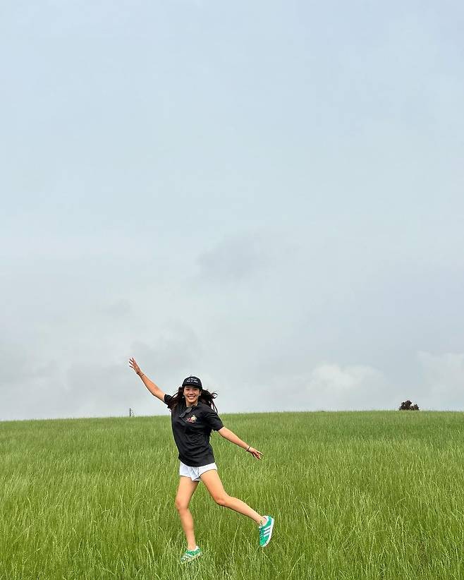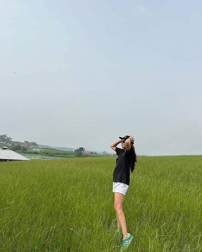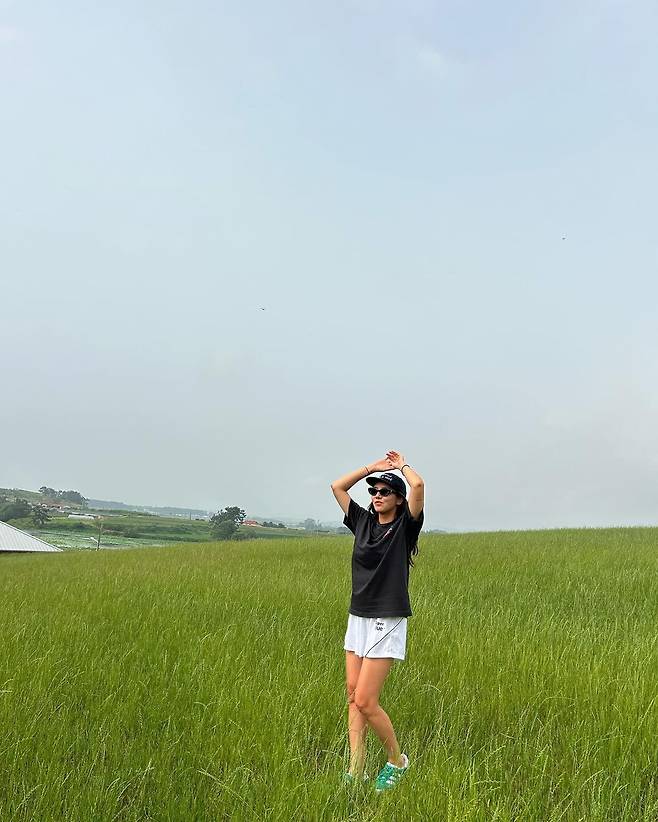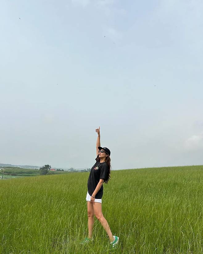 사진 속 손담비는 블랙 반팔티와 화이트 숏팬츠를 입고 캡모자와 민트 운동화를 신어 내추럴한 모습으로 여행을 즐겼다.