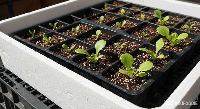 트레이에 씨앗을 심은 후, 아이스박스에 넣고 물을 바닥에 채운다. 바람에 날리지 않도록 벽돌로 눌러주면 일주일 정도는 별다른 관리 없이도 안정적인 환경이 유지된다. 아이스박스 안은 습도와 온도가 일정하게 유지되기 때문에 상추 씨앗이 잘 발아하고, 모종도 튼튼하게 자란다. 바람이 들지 않는 반그늘에 두면 더 효과적이다.
