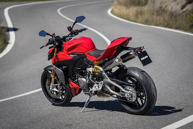 '스트리트파이터 V2 S'스트리트파이터 V2 S는 이름만으로도 직관적인 성격을 드러내는 모델로, 890cc 90° V2 엔진을 탑재한 최신 스트리트파이터 라인업 중 가장 경량화된 모델이다. 연료를 제외한 건조중량은 단 175kg에 불과하며, 파니갈레 V2와 동일한 섀시와 전자제어 시스템을 공유하면서도 페어링을 제거해 네이키드 스타일을 강조했다.