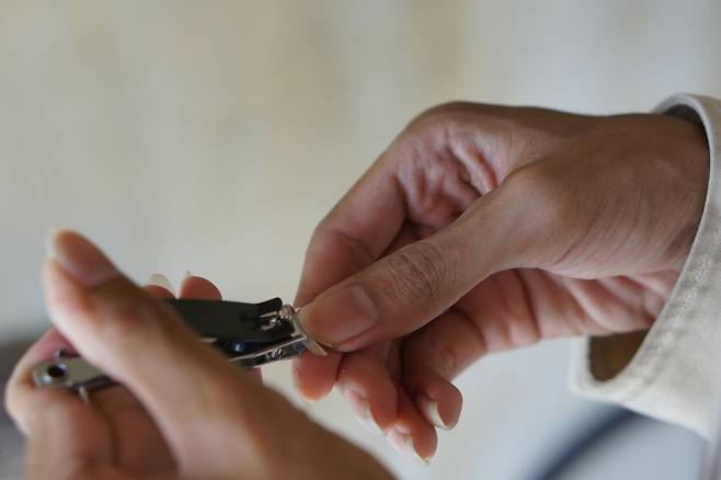 사무실에서 손톱 깎기