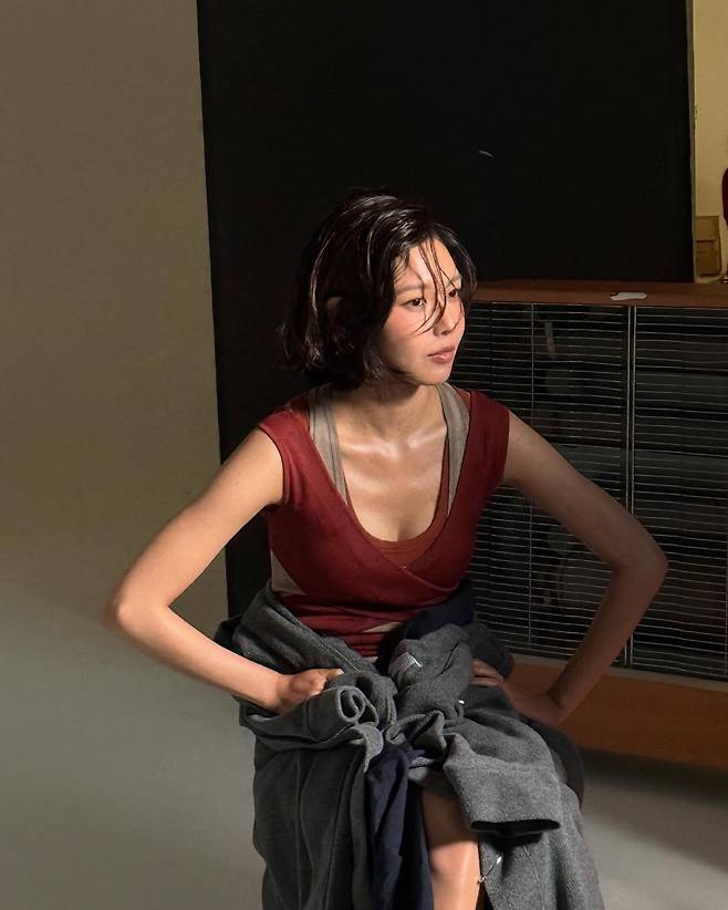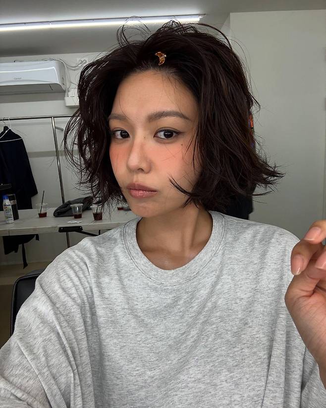 자연스러운 메이크업과 미세하게 흐트러진 웨이브 숏컷이 조용한 힘을 전해요.